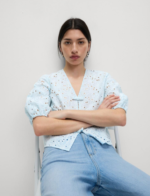 Pure Cotton Floral Cutwork Detail Bow Blouse